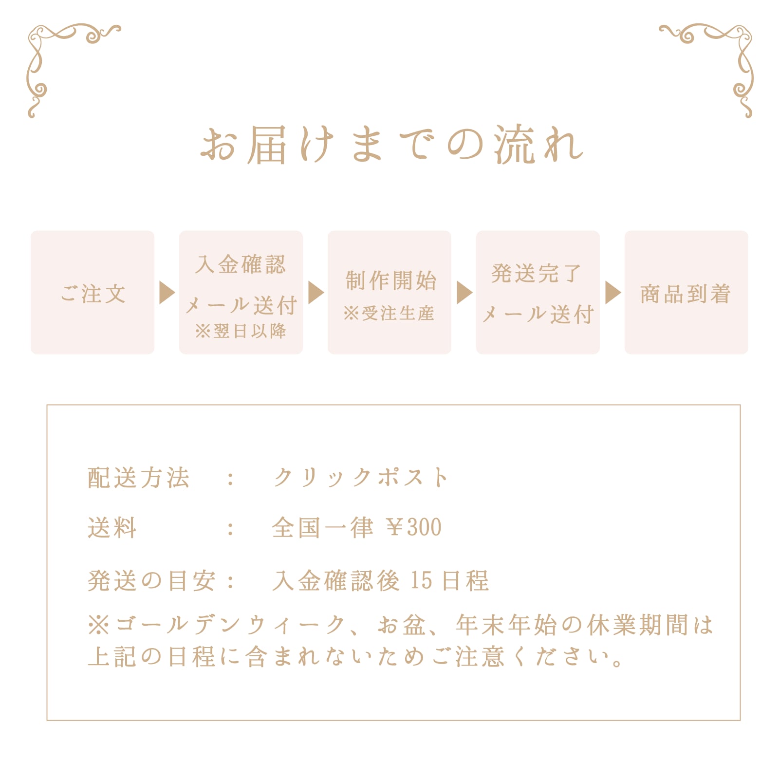 ①現在の発送目安を下記URLよりご確認ください。