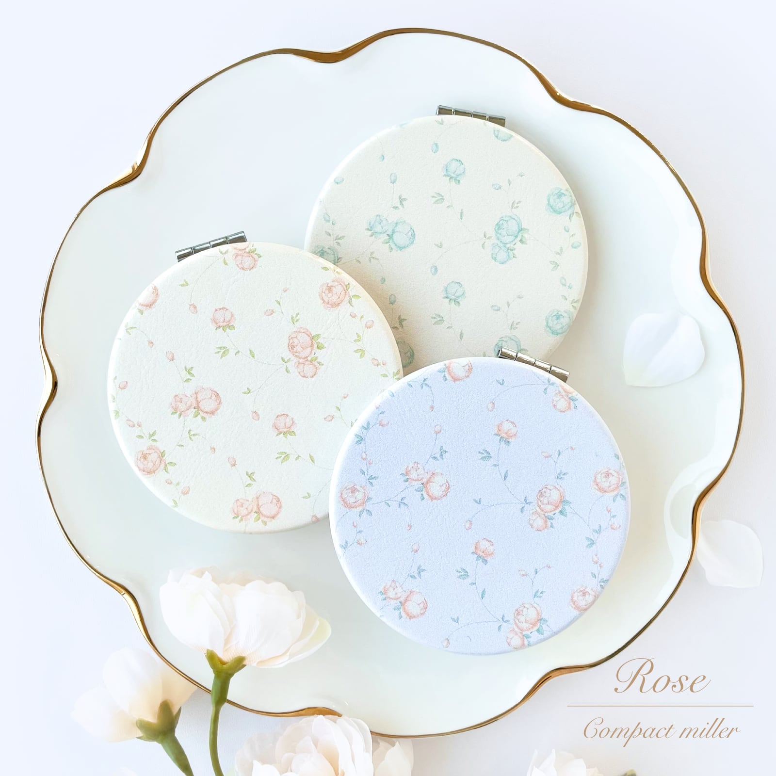 ローズ柄 コンパクトミラー