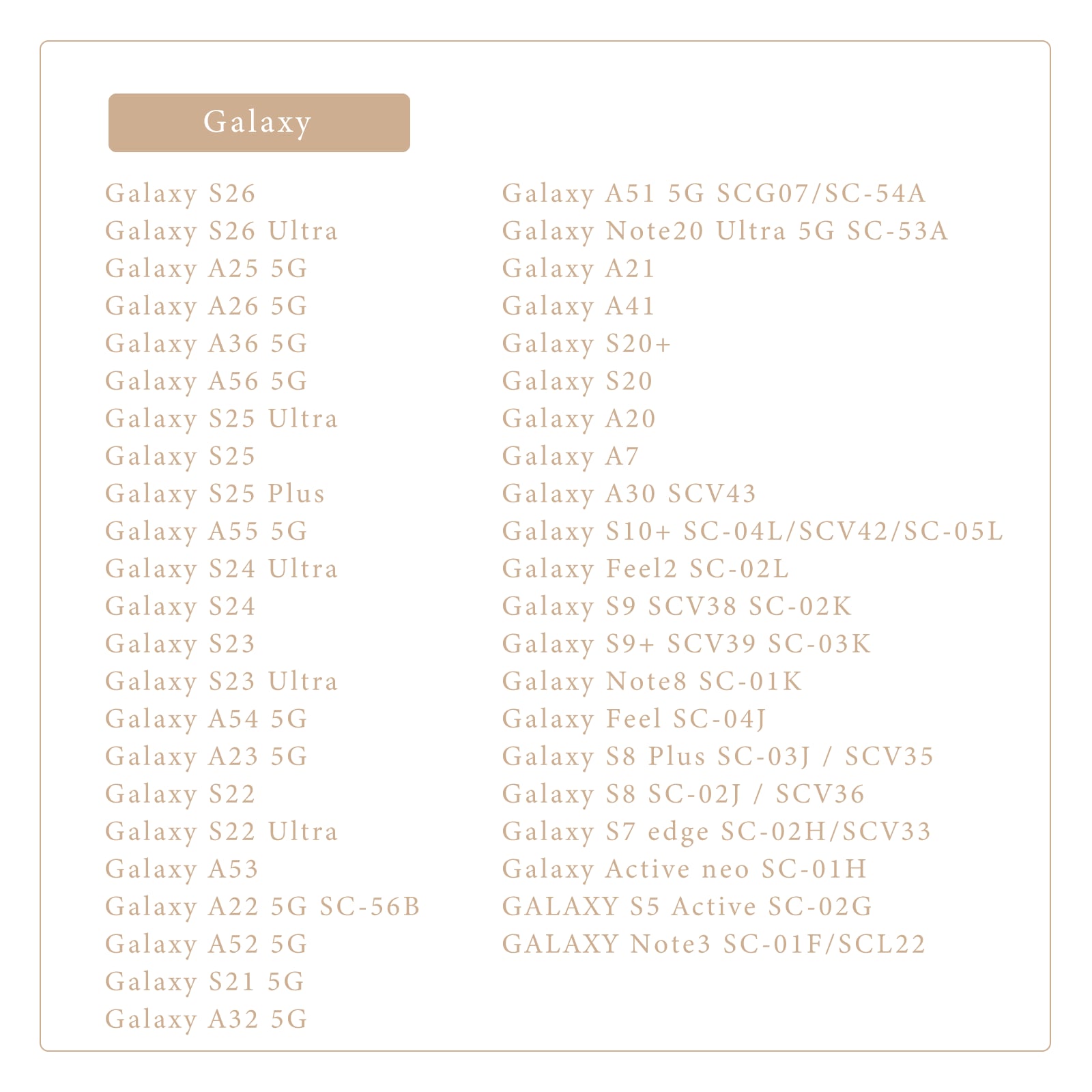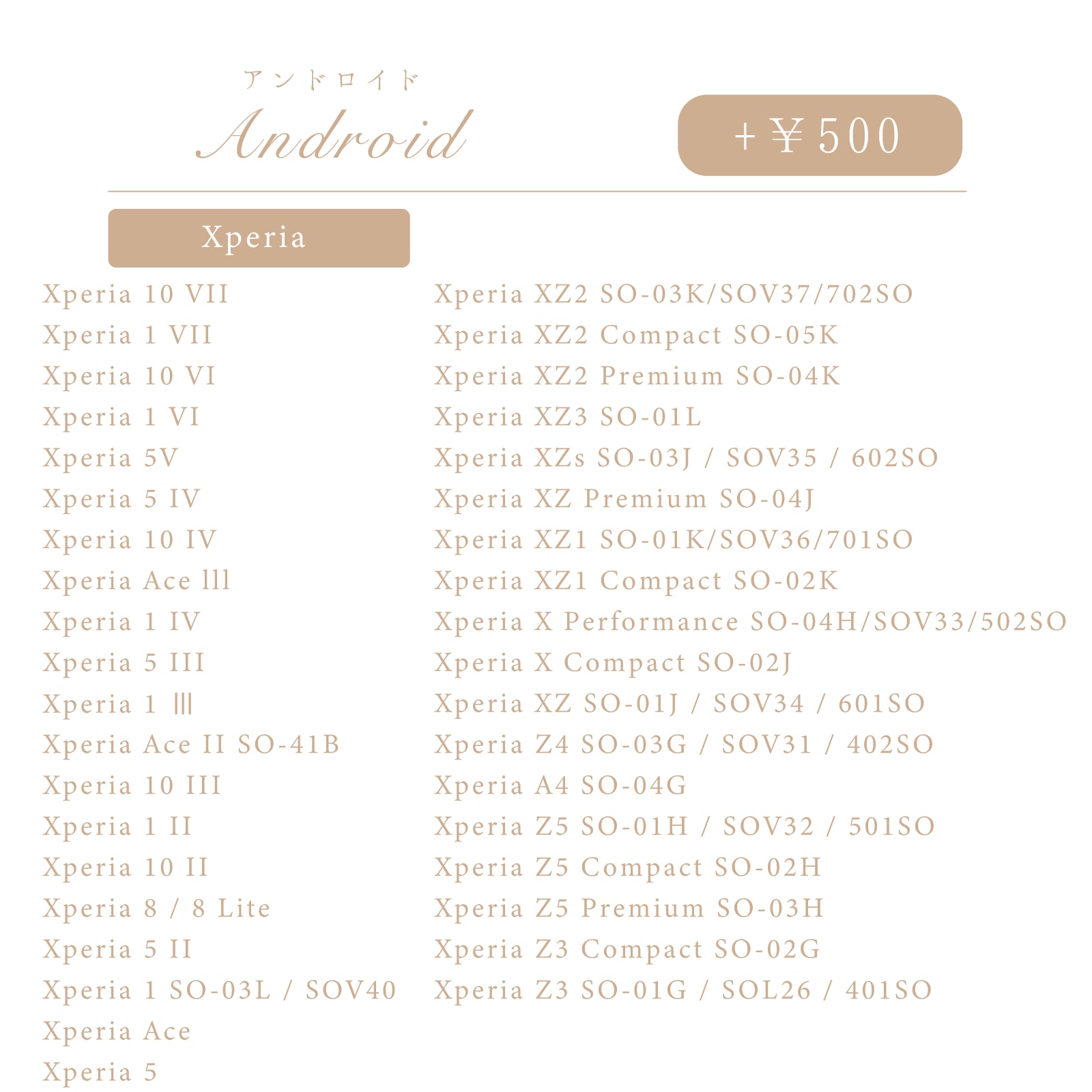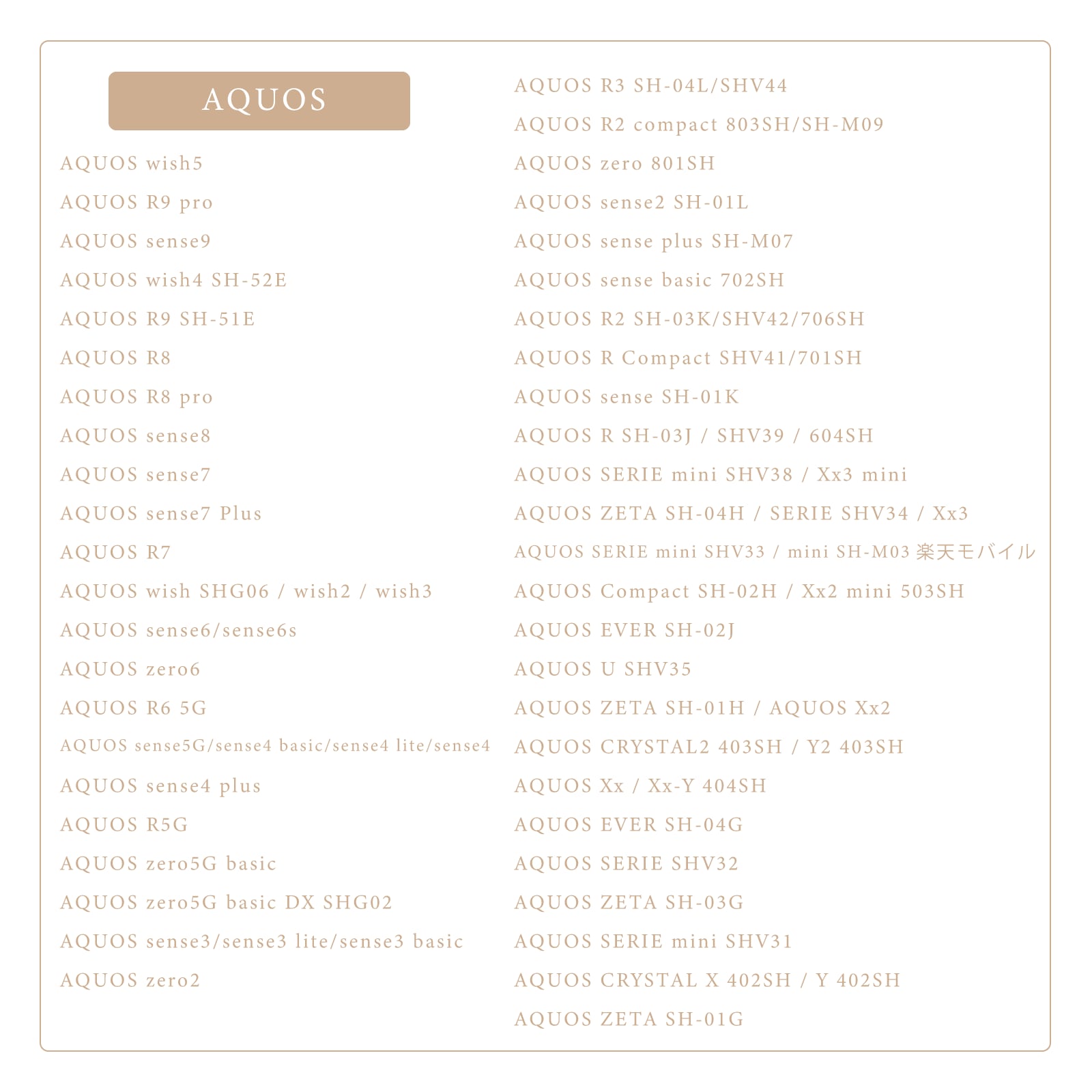 【手帳型スマホケース】対応機種一覧表