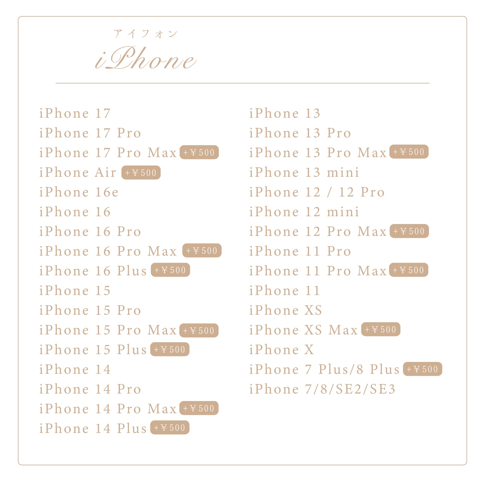 当店で制作可能な機種を掲載しております。